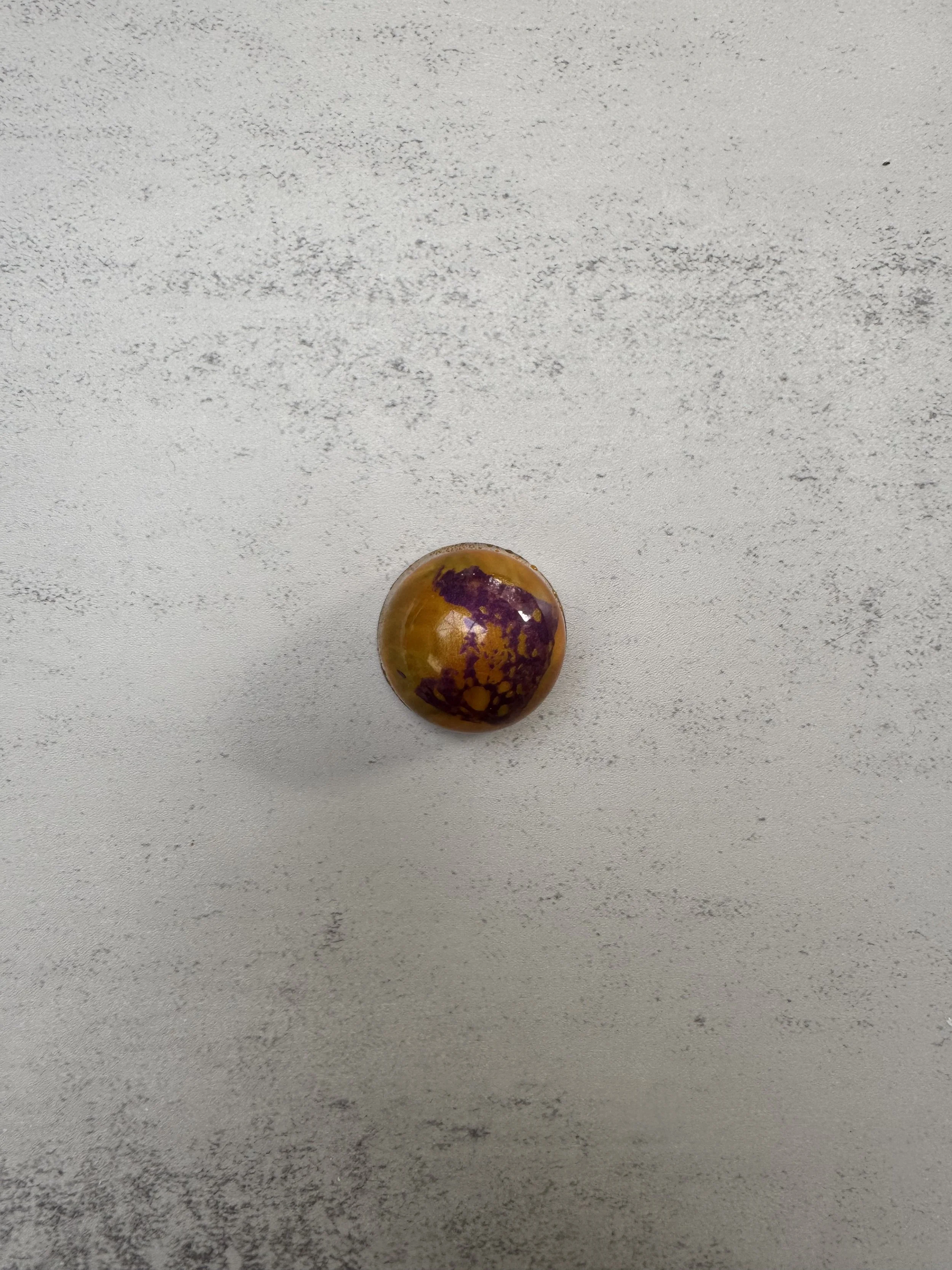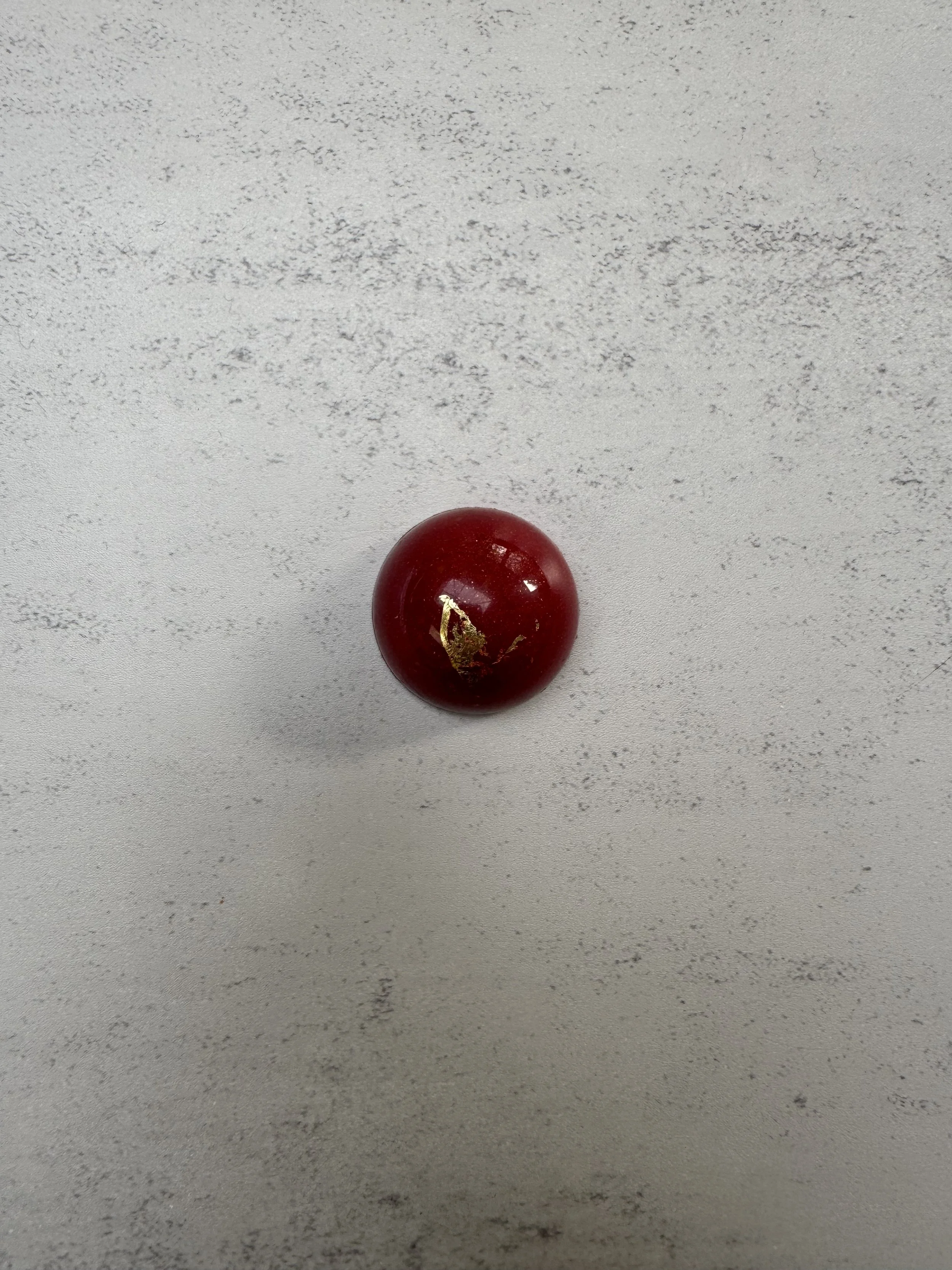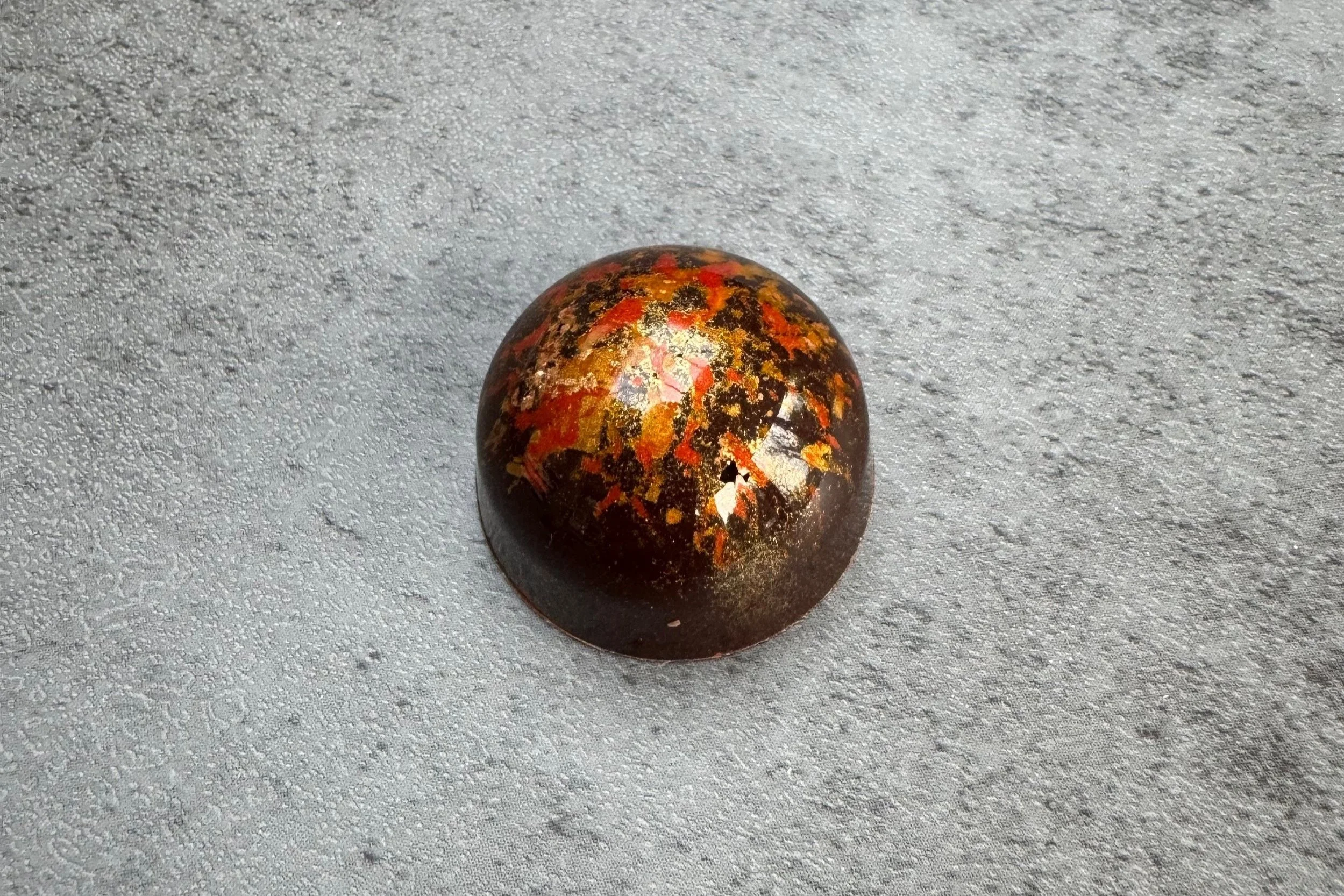 A feisty creation with a pleasant surprise. Dark milk ganache infused with Birds Eye Chillis form the base of this bon bon. A raspberry compote will soften the spiciness and provide a fresh and pleasant experience.
